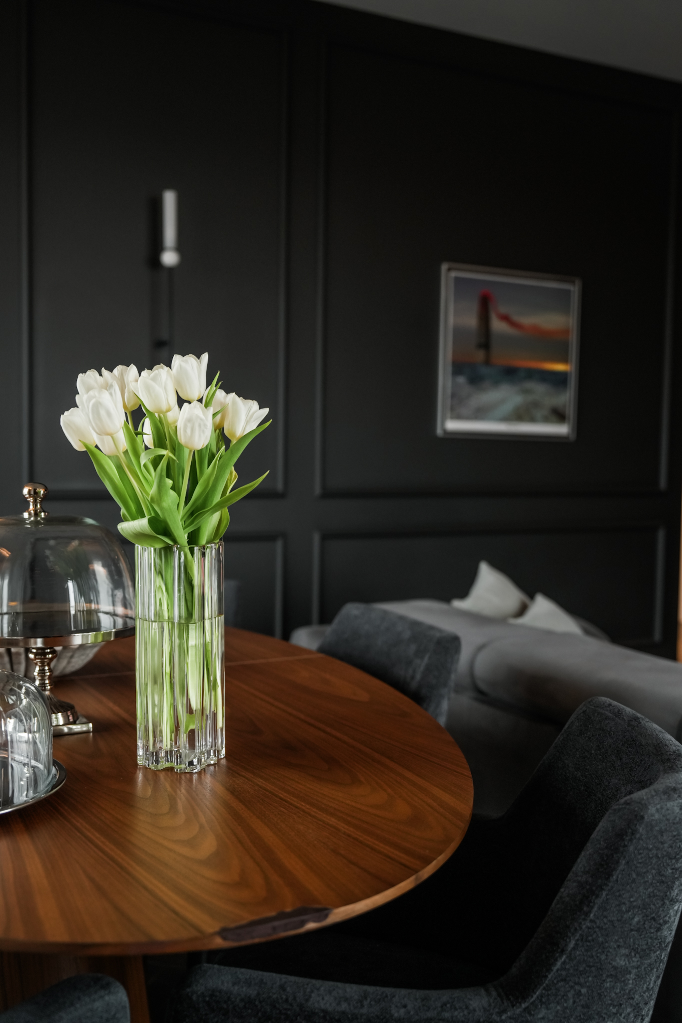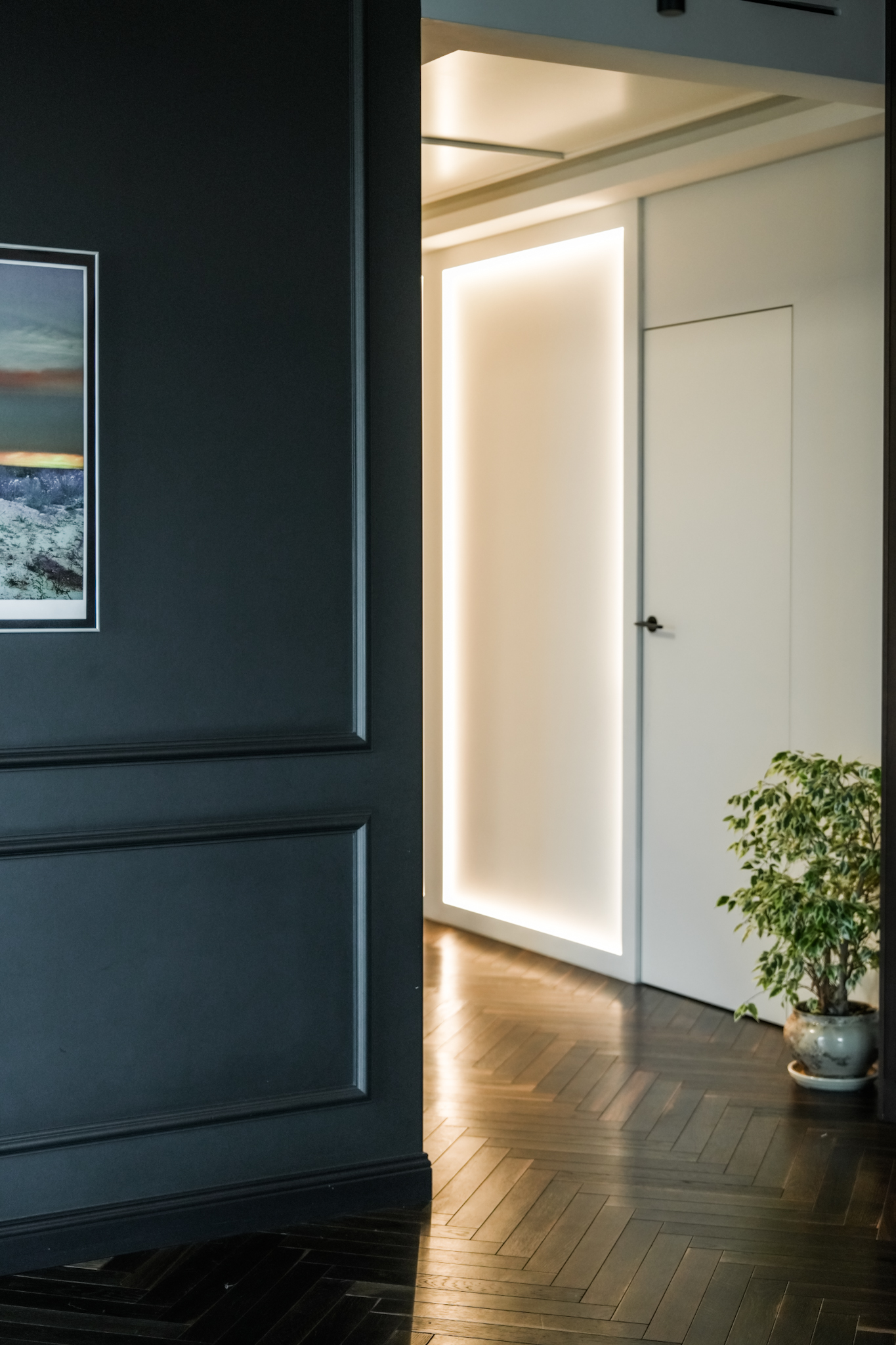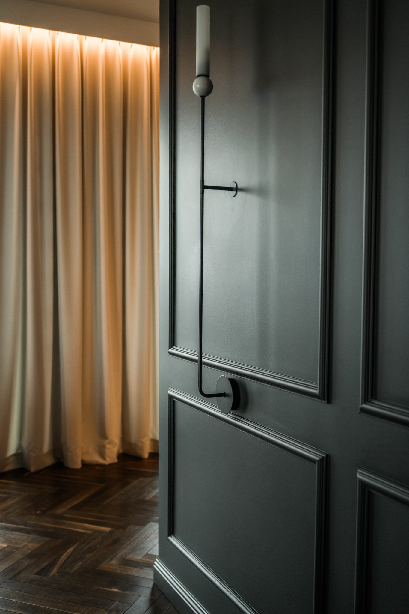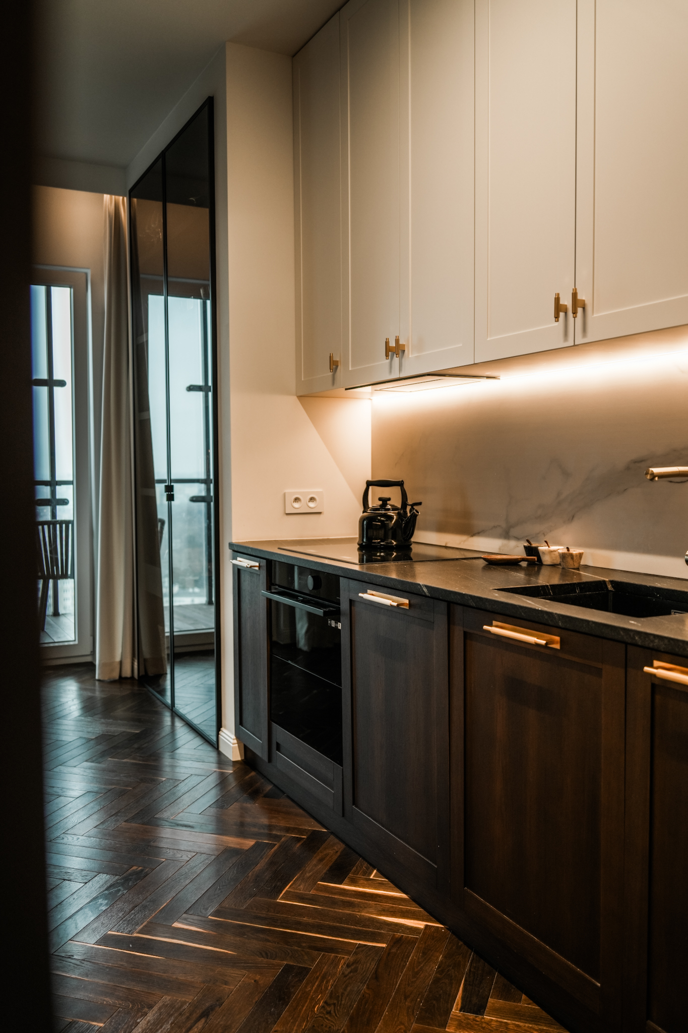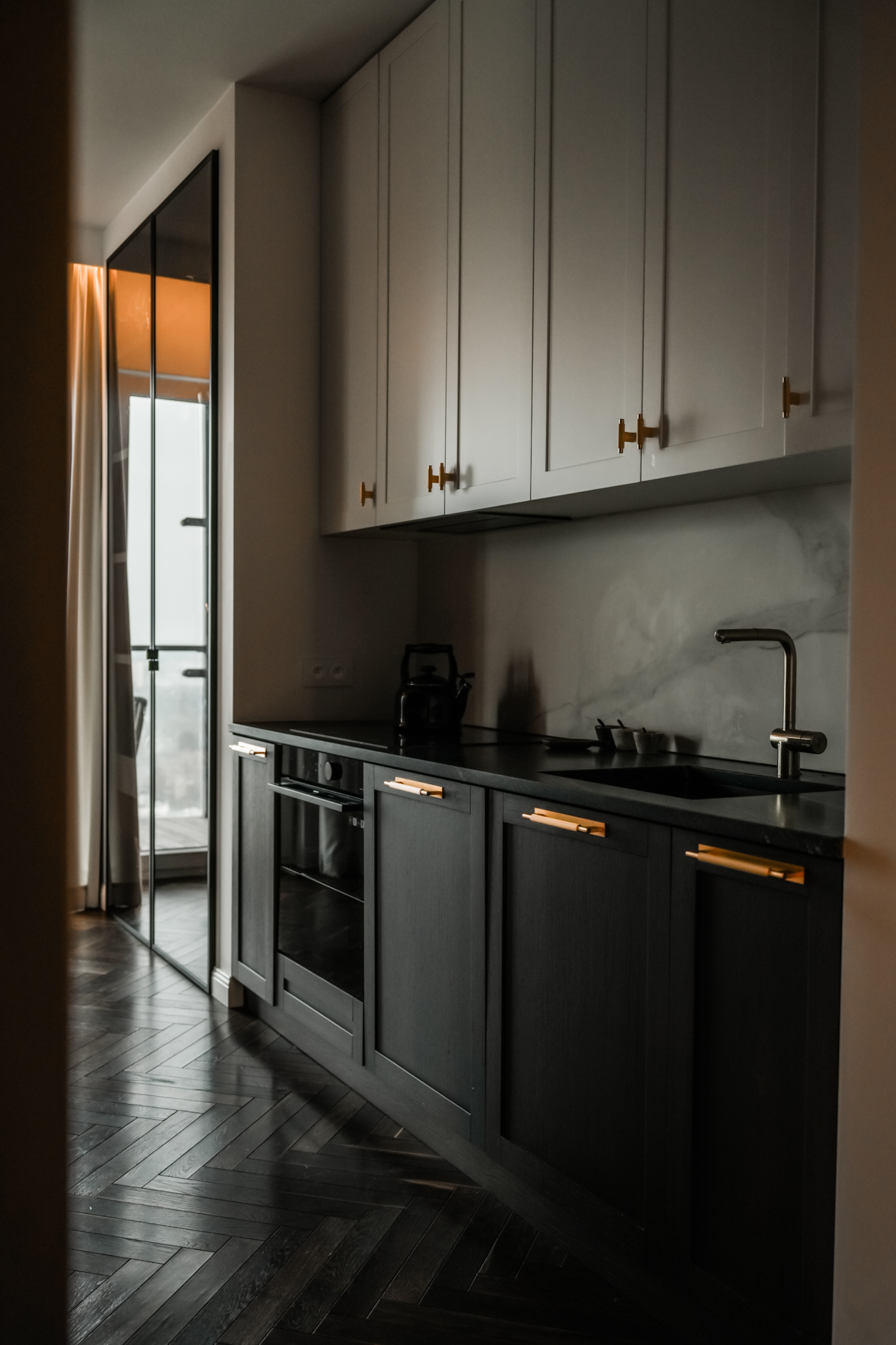 Ta realizacja powstała na bazie projektu dostarczonego przez klienta, który od początku miał jasno określoną wizję wnętrza eleganckiego, wyrazistego i utrzymanego w ciemnej, bardziej nastrojowej kolorystyce. Naszym zadaniem było przełożenie tej koncepcji na realną przestrzeń z zachowaniem wszystkich detali, proporcji i jakości wykonania.