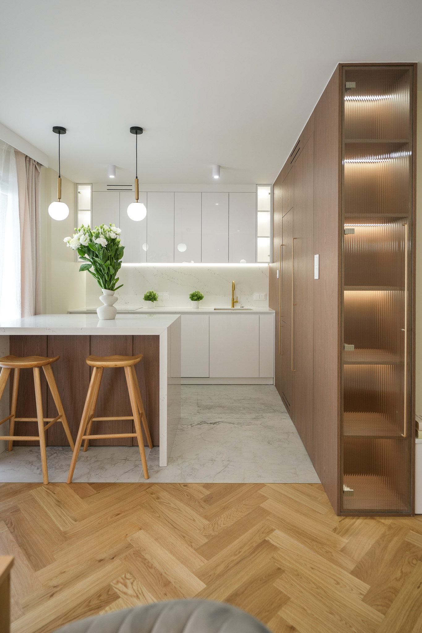 To realizacja pokazująca, jak wygląda profesjonalne wykończenie pod klucz mieszkań w Warszawie, realizowane kompleksowo- od projektu po ostatni detal.