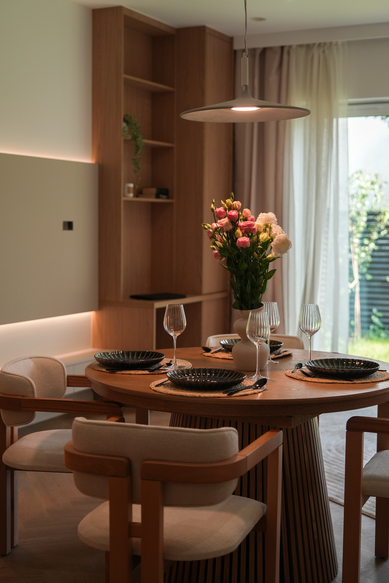 Zrealizowaliśmy kompleksowe wykończenie segmentu w Piasecznie w standardzie premium. Inwestycja została wykonana w formule „pod klucz”, obejmując pełen proces: projekt wnętrz, prace wykończeniowe, zakup wyposażenia oraz wykonanie mebli na wymiar. Klient otrzymał w pełni gotowy dom, przygotowany do zamieszkania bez konieczności angażowania dodatkowych wykonawców.